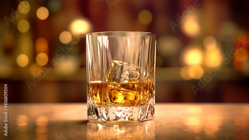 a glass of scotch whiskey on the bar, alcohol club nightlife countertop. Generative AI
