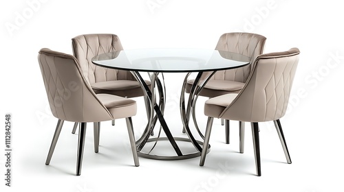 A glass table with four chairs around it