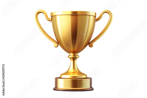 A gleaming golden trophy cup stands proudly isolated on transparent background, representing victory and achievement