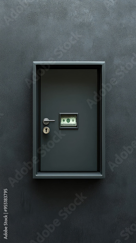 A Glimpse of Fortune: A Minimalist Safe Door Reveals a Peek of Cash Within.