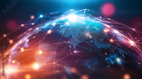 A Global Network of Connected Data Points and Lines on a Dark Background