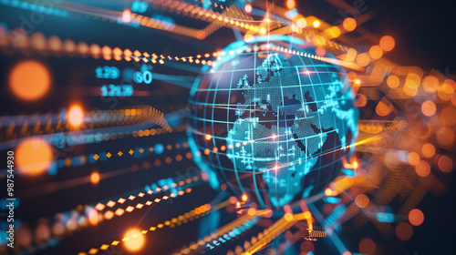 A globe with arrows representing global trade routes, moving between countries using alternative currencies