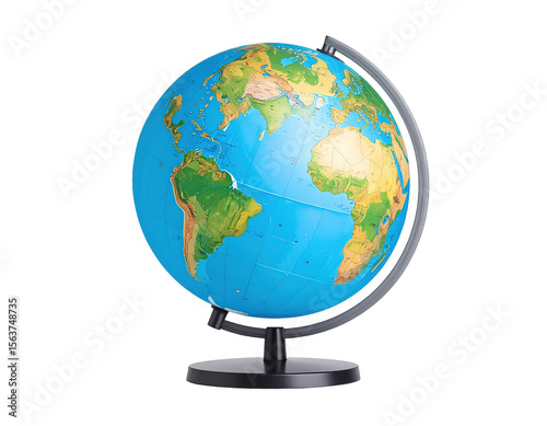 A globe with continents and oceans on a stand against black background isolated on transparent background