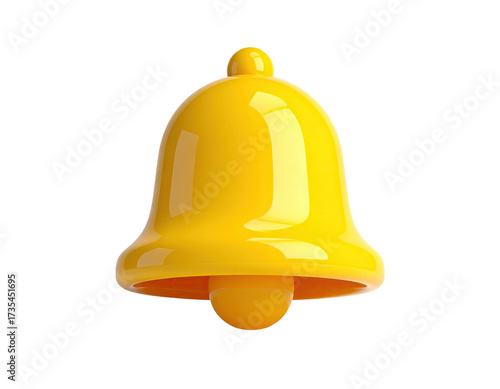 A glossy, 3D yellow bell icon, floating against a stark black background