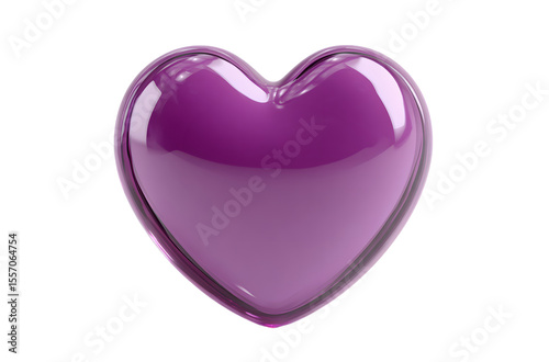 A glossy purple heart icon with rounded edges, no background, on a white background, in a front view, rendered in Cinema 4D,