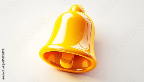 A glossy yellow bell icon with subtle lighting, presented on a bright white isolated canvas