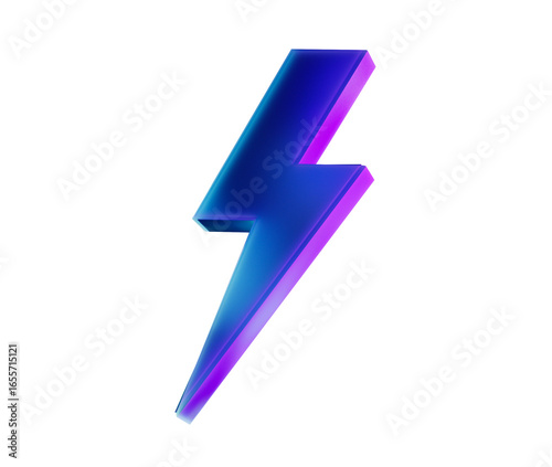 A glowing blue 3D lightning bolt icon with a sleek, modern and electrifying look. 3d illustration