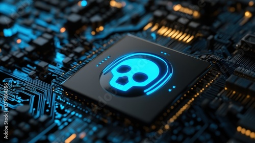 A glowing blue AI icon stands out on a black circuit board, representing futuristic technology.