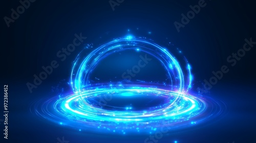 A glowing blue circular portal emitting vibrant light in a dark backdrop, depicting a sci-fi or fantasy theme