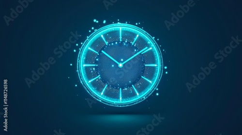 A glowing blue digital clock displaying the current time in a futuristic design.