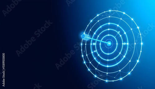 A glowing blue digital target with an arrow hitting the bullseye.