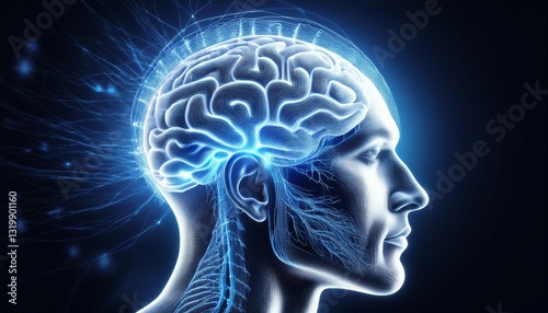 a glowing brain illustration depicting neural activity and thought