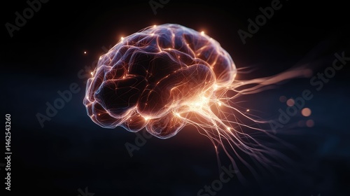 A glowing brain illustration with neural connections, symbolizing thought and intelligence.