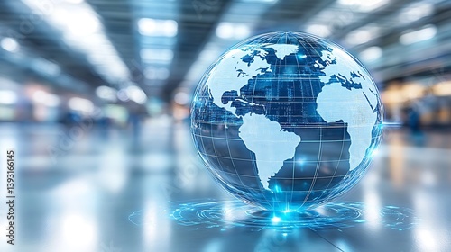 A glowing digital globe surrounded by futuristic shimmering effects