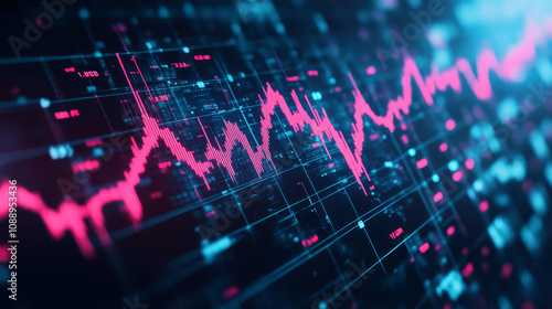 A glowing financial chart on a blue digital background illustrating stock market trends and data visualization