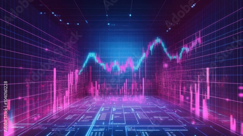 A glowing financial chart with an upward arrow, signifying economic improvement, placed against a futuristic digital grid. Cool blue tones used. --chaos