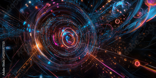 A glowing futuristic representation of AI-driven cybersecurity monitoring, featuring cybernetic encryption networks, pulsating blockchain security layers, and swirling holographic digital defense