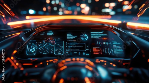 A glowing holographic dashboard featuring futuristic graphs and data streams, representing cutting-edge technology
