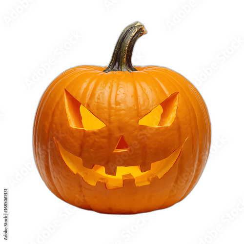 a glowing jack o lantern with sharp teeth and triangular eyes