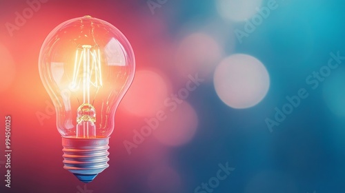 A glowing light bulb illuminates a colorful backdrop at an intimate evening gathering