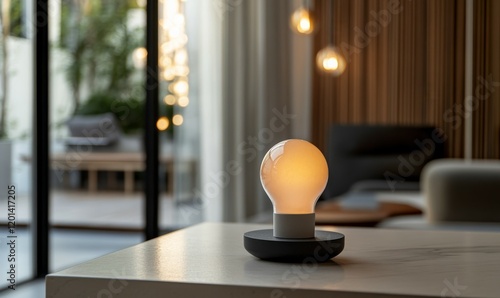 A glowing light bulb rests horizontally on a neutral surface, emitting a warm glow that symbolizes ideas, knowledge and a touch of elegance in design.