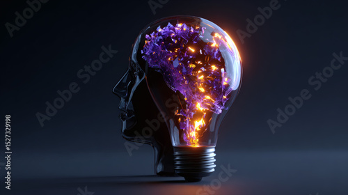 A glowing light bulb shaped like a head, filled with colorful fragments, symbolizes creativity and innovation in thought.