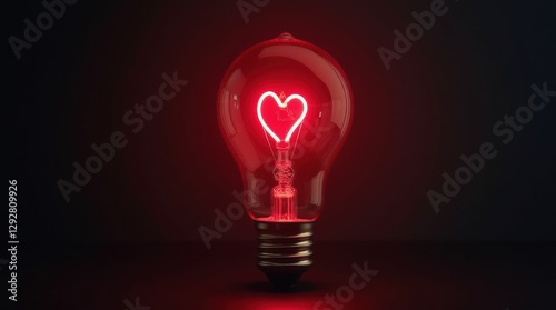 A glowing light bulb with a red heart-shaped filament inside, symbolizing love, creativity, and inspiration