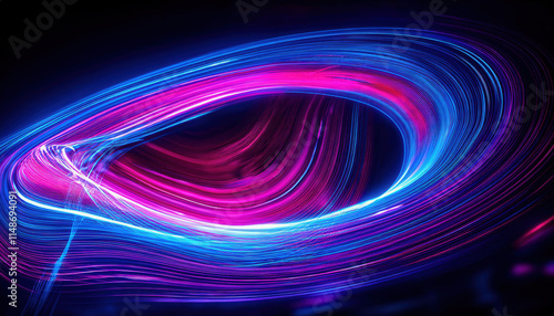 A glowing neon abstract design with swirling lines of electric pink and blue against a dark background, creating a dynamic and vibrant atmosphere, perfect for modern, futuristic themes.