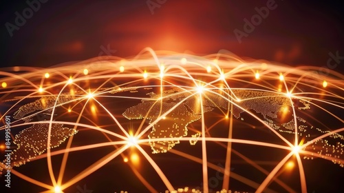 A glowing network of lines connecting cities around the world, symbolizing global communication and interconnectedness.