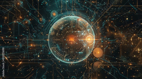 A glowing orb of light is surrounded by a blurry, colorful background. Concept of worldwide network