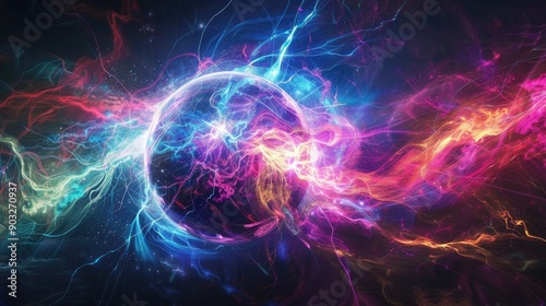A glowing orb of plasma with colorful tendrils of light emanating from it