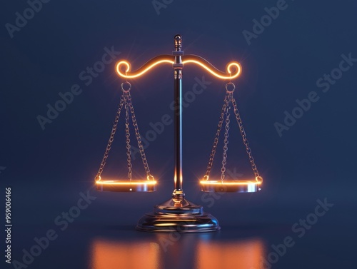 A glowing scales of justice on a dark background, symbolizing law, balance, and fairness.