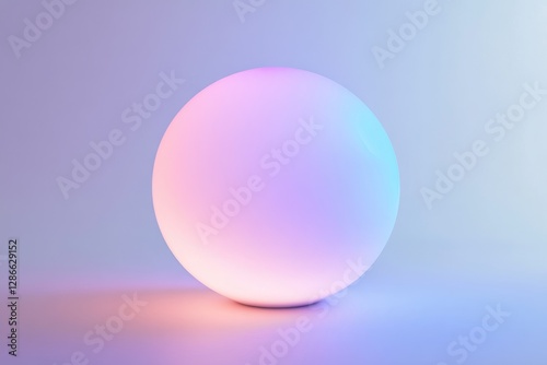 A glowing sphere emits soft pink and blue light against a muted background, creating a calming and minimalist aesthetic.