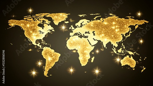 A glowing world map on a digital display with highlighted regions for global business growth.