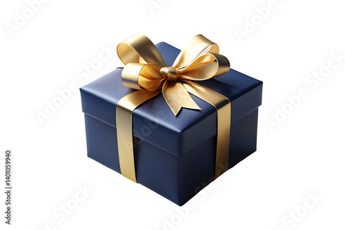 A gold gift box with a red ribbon and bow, isolated for any holiday celebration surprise