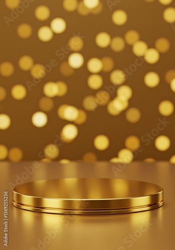 A gold on a gold a bokeh background, wallpaper, Golden podium with shimmering background creating a festive atmosphere for events and celebrations.