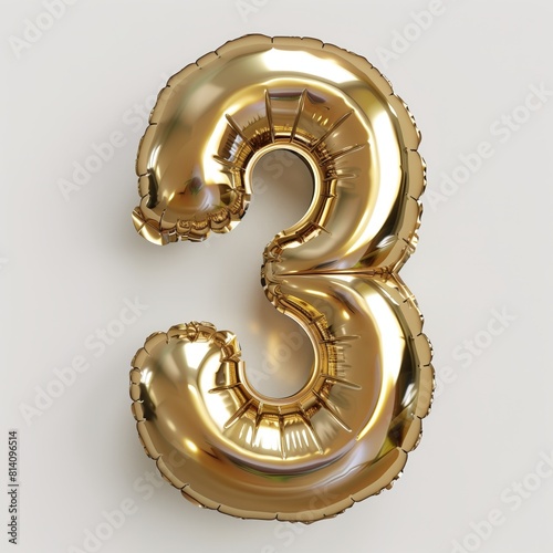 A golden Arabic numeral 3, in the form of an inflatable balloon.