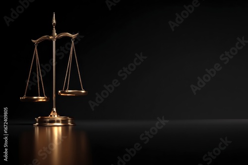 A golden balance scale centered against a dark backdrop gleaming under the light