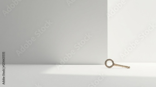 A golden key rests on a minimalist white surface, symbolizing opportunity and access to potential