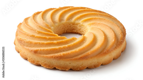 A golden-brown butter ring biscuit, perfectly crisp and isolated on a transparent or white background for a clean presentation.