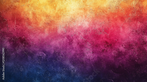 A grainy gradient banner design featuring purple, red, blue, orange, yellow, and pink colors on a black background symbolizing chaos, energy, and emotional intensity in an abstract artistic style