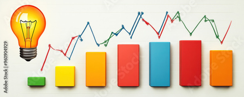 A graph with a light bulb on top of it. The graph is showing a rise in numbers