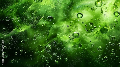 A green algae background with bubbles trapped underneath, giving a fresh and aquatic feel