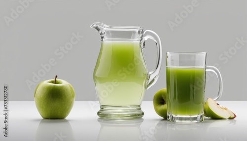 A green apple, a glass of green liquid, and a pitcher of green liquid