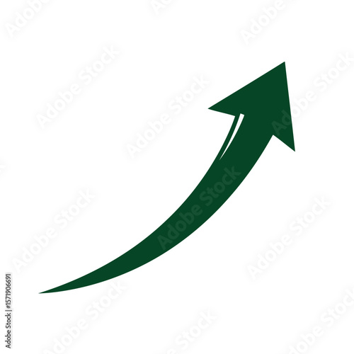 A green arrow curves upward, symbolizing growth and success, isolated on white background