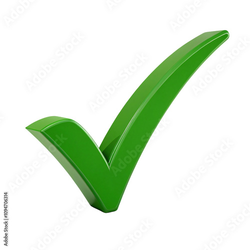 A green checkmark with a polished surface, slightly different in angle, emphasizing approval or environmentally conscious choices, set against a transparent background