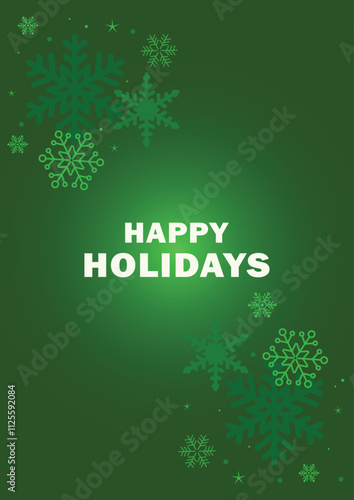 A green Christmas background with snowflakes, minimalist xmas card design with the text "Happy Holidays" in a simple font.