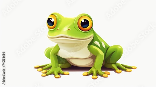 A green frog with big eyes sitting on the ground. Suitable for nature and animal themes