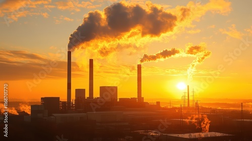 A green industrial facility with large carbon capture systems, demonstrating cutting-edge technology to combat global warming