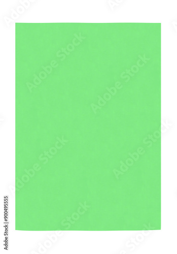A green piece of paper vertical. On isolated transparent background.